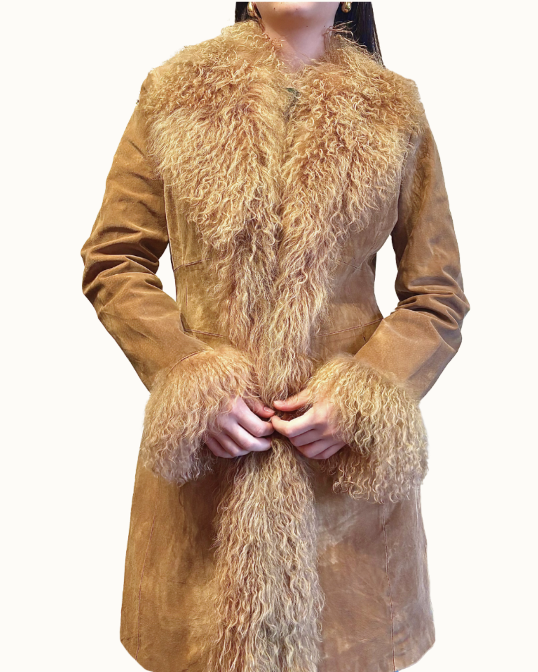 • Material de 100% piel y pelo borrego mongol